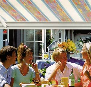 Überall dort, wo Sonne mit enspannendem Schatten gewünscht ist, kommen Markisen in vielen Designs und Farben zum Einsatz.